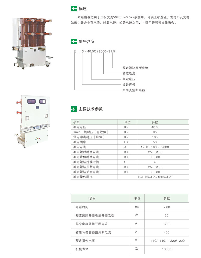 E3-40.52000-31.5型戶(hù)內(nèi)高壓真空斷路器