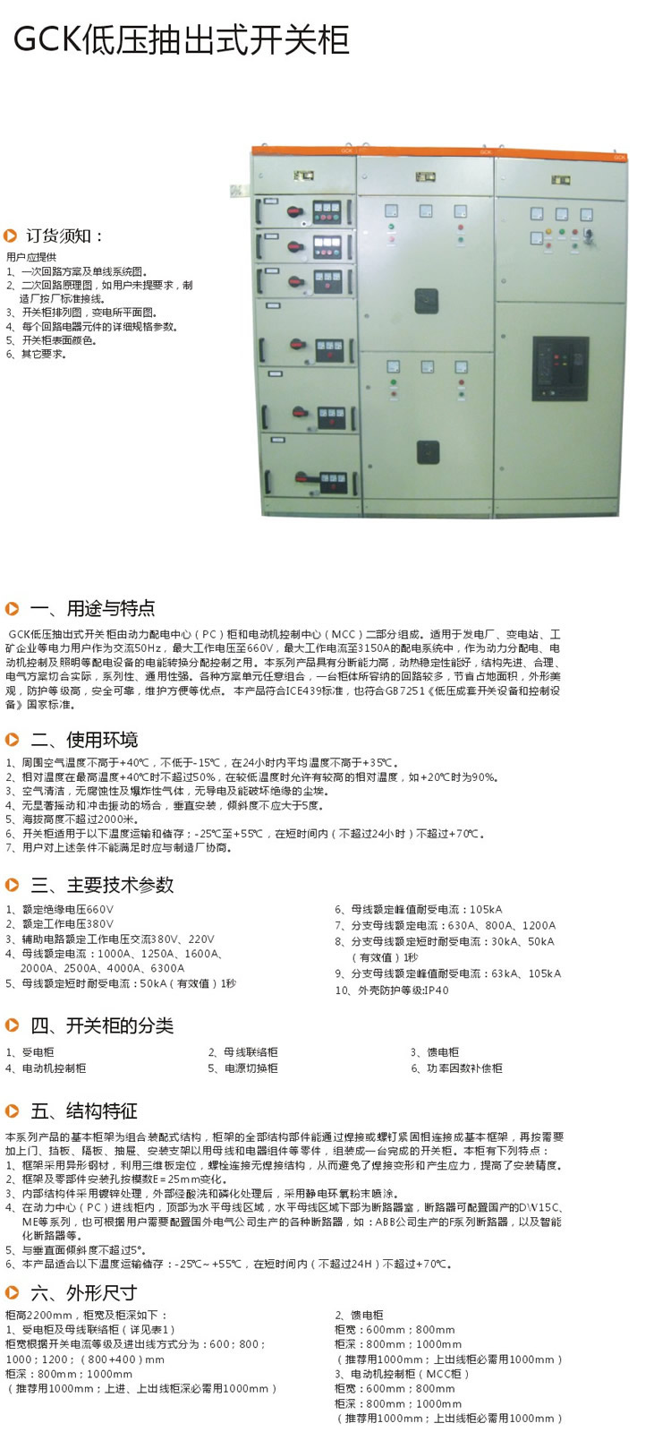 GCK低壓抽出式開關(guān)柜