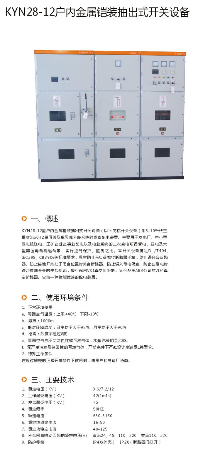 KYN28-12-戶內(nèi)金屬鎧裝抽出式開關(guān)設(shè)備