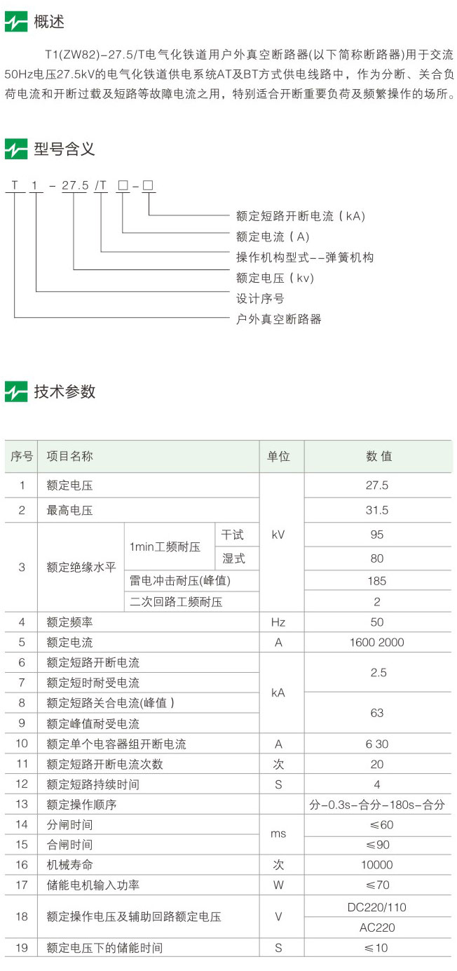 T1(ZW82)-27.5電氣化鐵道戶外真空斷路器