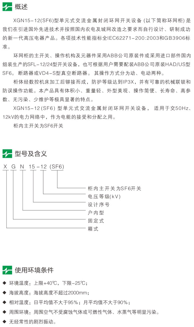 XGN15-12(SF6)型箱式固定式交流金屬封閉開關(guān)設(shè)備